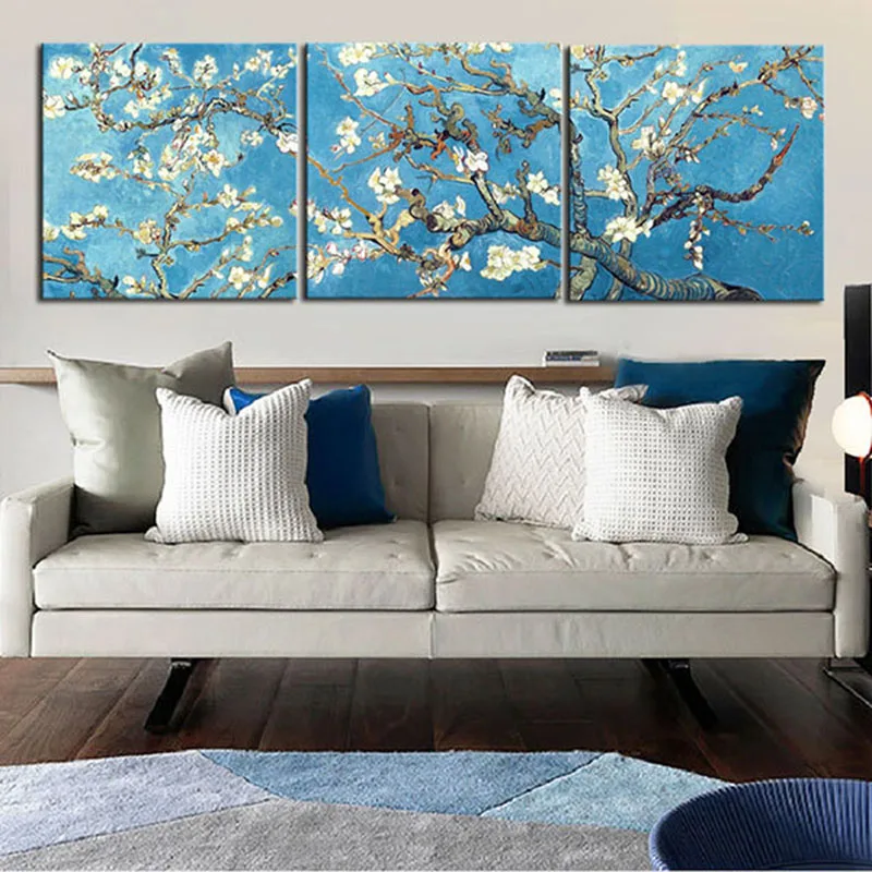 Van Gogh Abstract Apricot Canvas Print Painting Blue Flower Artwork Picture Still Life Wall Art For Home Decor 3 Pcs/Set| | - AliExpress